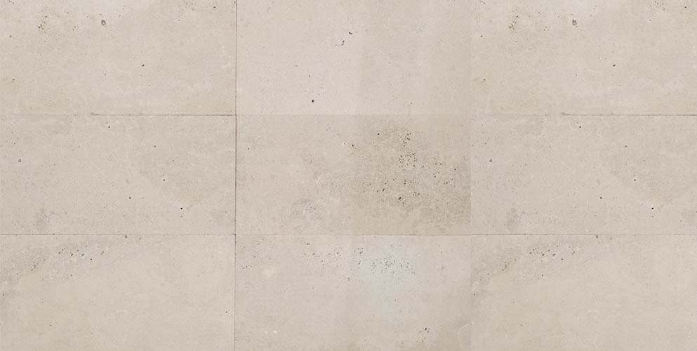 The Soft Cream Sandblasted Travertine in the Modamar Marble collection combines soft cream tones with a sandblasted, rough surface. This process adds slip resistance and highlights the stone's natural color.
